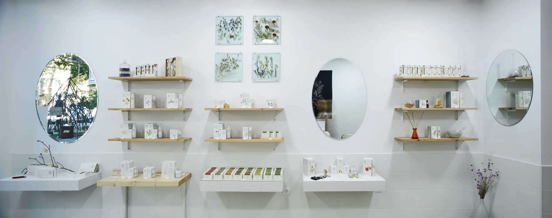 This boutique was designed as the first Nairian branded flagship store. It is located on Abovyan Street, a busy and popular shopping street in Yerevan, Armenia. Nairian never adds synthetic fragrances to their products, instead opting for the natural smells of their essential oils to express themselves in a subtle yet distinct manner. Following this lead, the physical space opts for the expression of color and texture through simple materials, allowing them to serve as a backdrop to showcase Nairian's unique products.