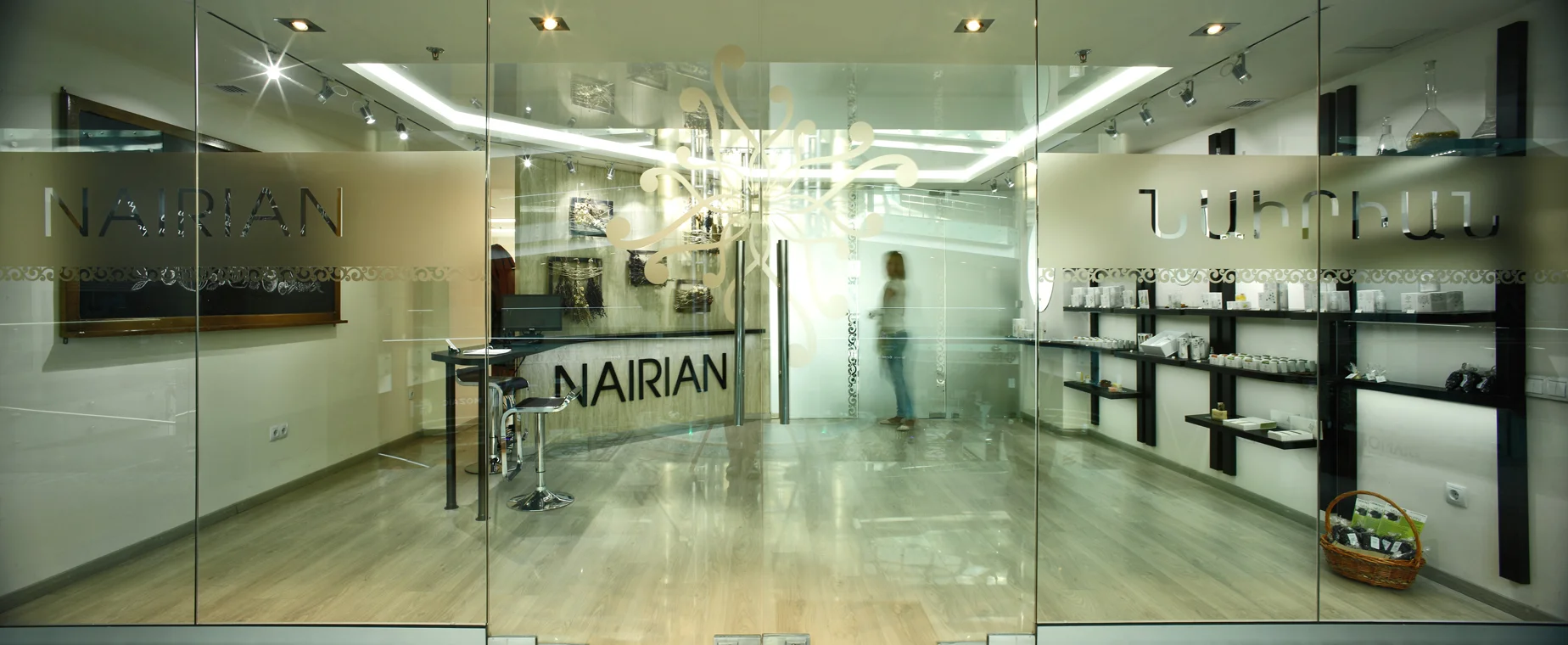 This hybrid office is located in Elite Plaza Business Center in Yerevan, Armenia. The design was somewhat constrained by the materials which were allowed to use due to the building's requirements, as well as the irregularity of the given space. However despite these obstacles, we were able to realize a multifunctional office, housing Nairian's corporate headquarters, as well as a product store, and the location where Nairian hosts it's educational Tea Times.