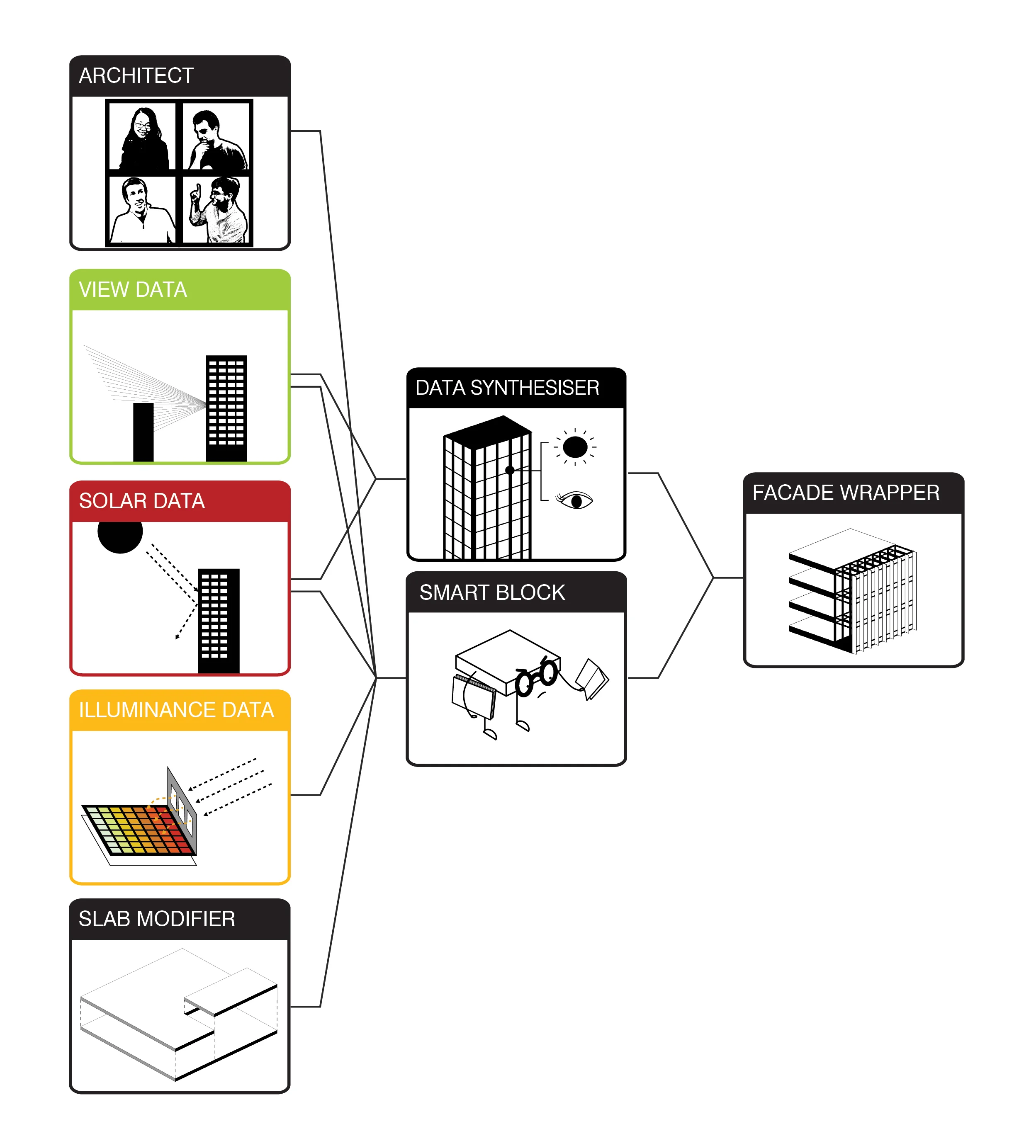 The technical section of the model I focused on was the synthesis of data coming in from the analytical tools into a slab cutter/facade suggestion tool. Further description of this specific tool is below the conclusion.